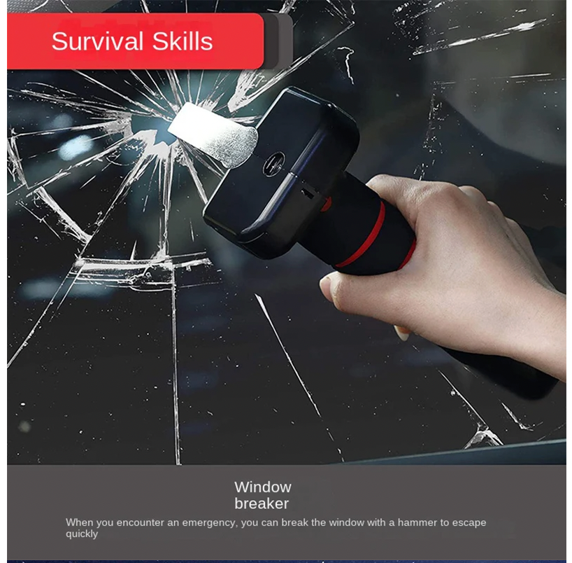 - ✅ 緊急逃生功能:內置鋼質安全錘頭及安全帶割刀,於意外時協助破窗及脫困。