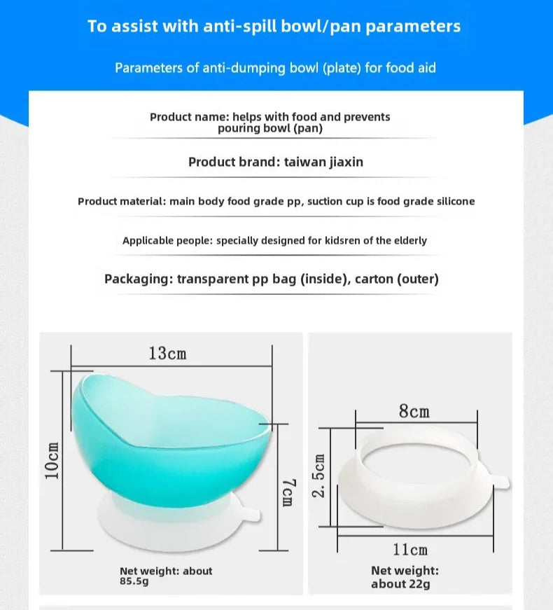 這款助食碗是長者、兒童及康復人士的理想選擇。 無需每口都扶著碗防滑,大大減輕照護壓力。 搭載加高護擋,可讓使用者更輕鬆舀飯、湯或粥, 適用於日常居家、安老院、長期照護中心或外出用餐。
