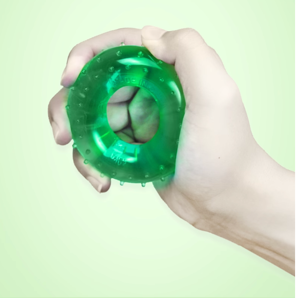 - 單手握住練力圈,慢慢擠壓約 3–5 秒,然後放鬆。