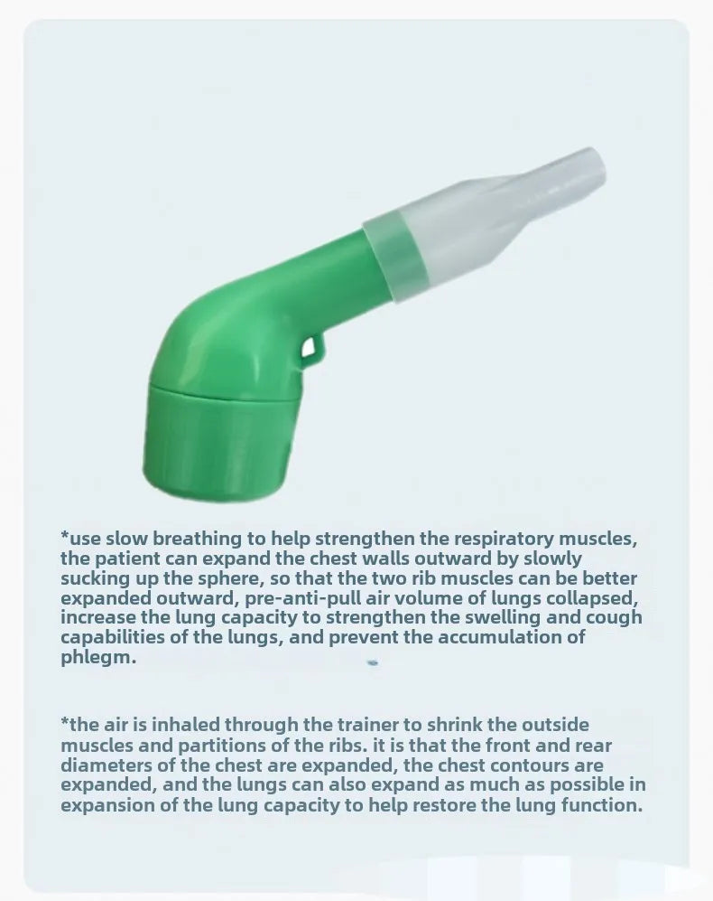 - ✔️ 訓練肺部功能:吸氣、呼氣過程中刺激呼吸道,提升咳痰效率,亦有助改善肺活量及呼吸耐力。