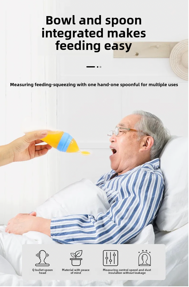 這款 擠壓式餵食瓶 專為長者、康復期人士、吞嚥較慢者,以及需協助進食的家庭使用。 柔軟矽膠瓶身可輕鬆擠壓,能有效控制流量,避免過量導致嗆食。防漏瓶嘴令餵食過程更乾淨, 適合日常進食米糊、濃湯、果泥、營養補充飲等流質或半流質食物。