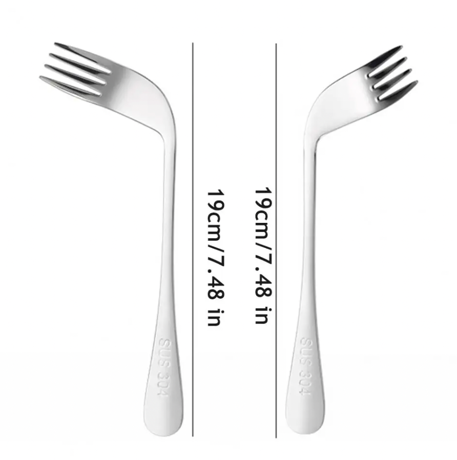 這款 不鏽鋼助食叉子 專為 長者、關節炎患者、中風康復者、手部活動受限人士及照護者 而設。 彎曲叉頭採用左右手分向設計,使餵食更省力、更自然,同時提升長者自助進食能力。 耐用不鏽鋼叉頭安全衛生,不易刮口,十分適合長期使用及需要保持高度清潔的家庭或護理環境。