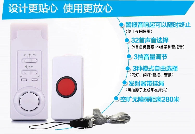 - ✔️ 一鍵呼叫 / 即時提醒:按下發射器按鈕,接收器立刻發出聲響及閃光提示,快速通知照護者,適合長者夜間或突發需要時使用。